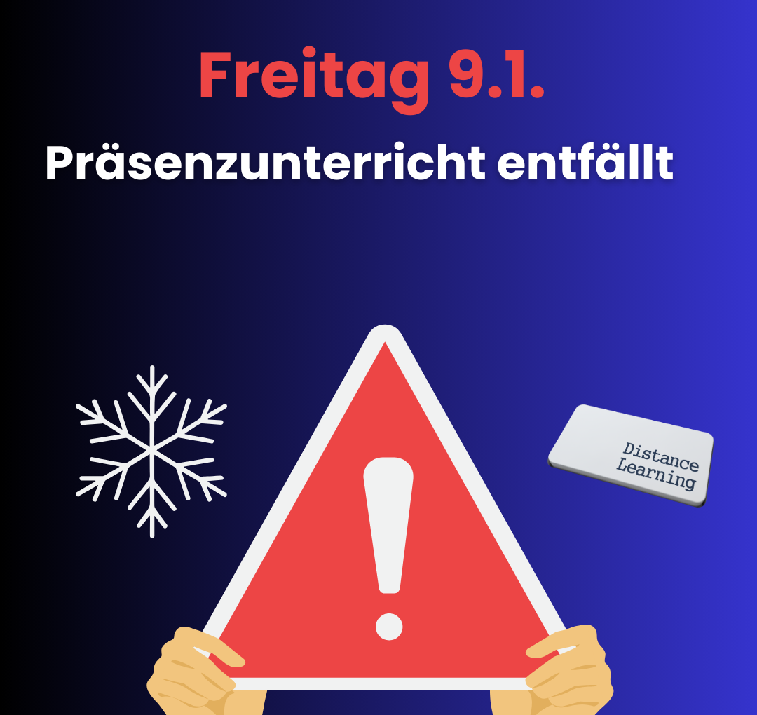 Am Freitag, den 9.1., entfällt aufgrund der Witterungsbedingungen der Präsenzunterricht.