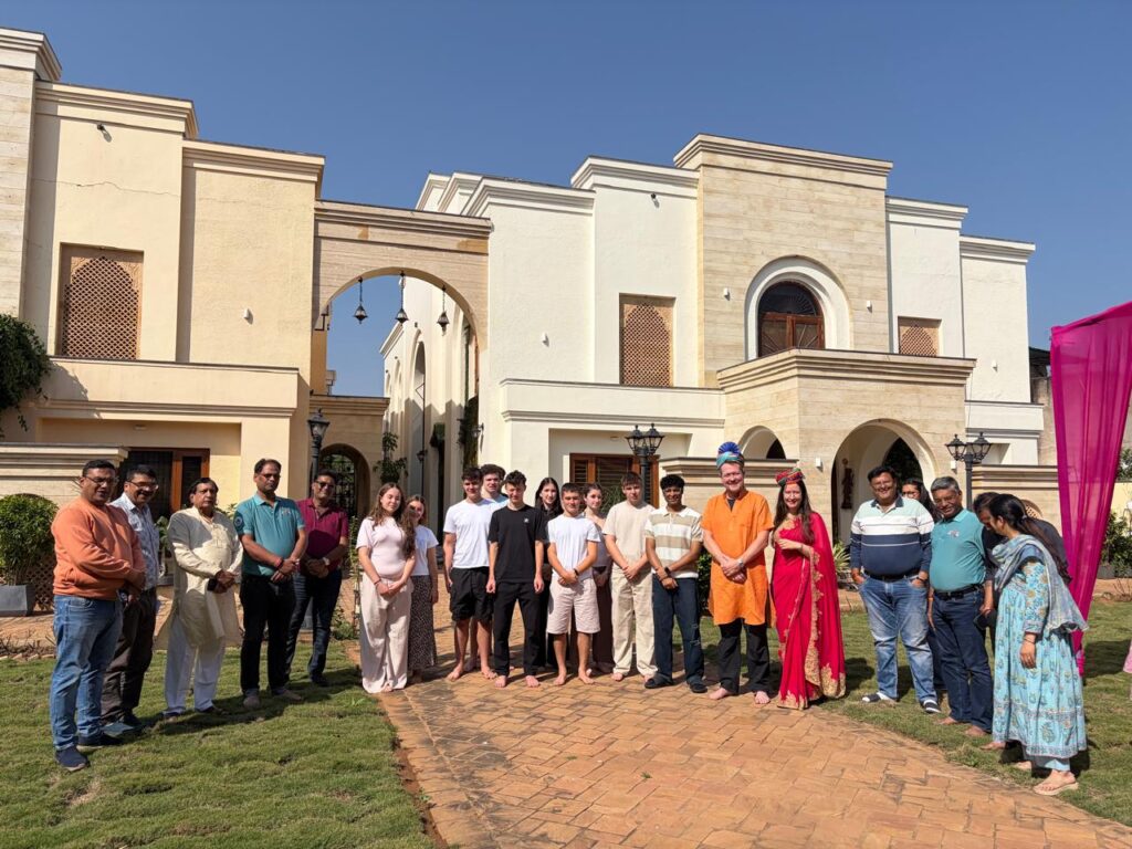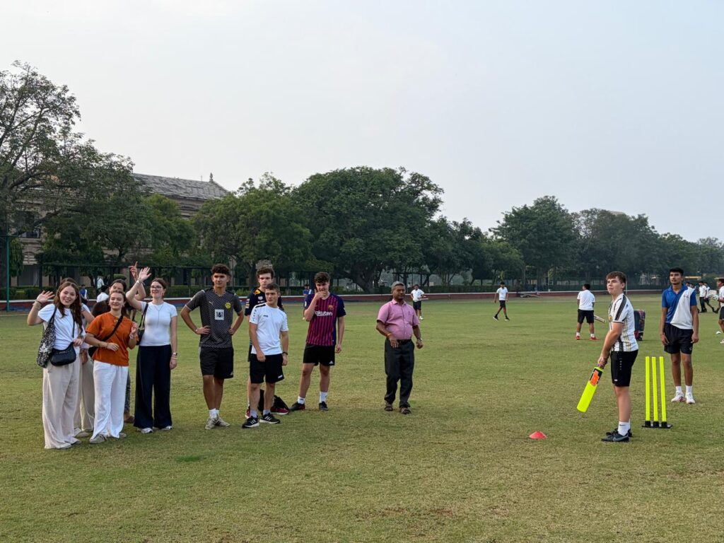 Auf dem Weg nach Gwalior besichtigte die Gruppe in Agra das historische Red Fort und wurde im Anschluss von einem ehemaligen Schüler der Scindia School gastfreundlich empfangen. In Gwalior selbst stand der Austausch mit der Partnerschule im Mittelpunkt: Die Schülerinnen und Schüler nahmen an der Morning Assembly teil, erhielten Einblicke in Unterricht und Fachbereiche wie Musik, Holz- und Werkstätten und führten ein gemeinsames Research Project zu heimischen Pflanzen durch. Sportliche Aktivitäten wie Cricket, Fußball und Tennis sowie gemeinsame Teerunden ermöglichten ein lebendiges Miteinander.