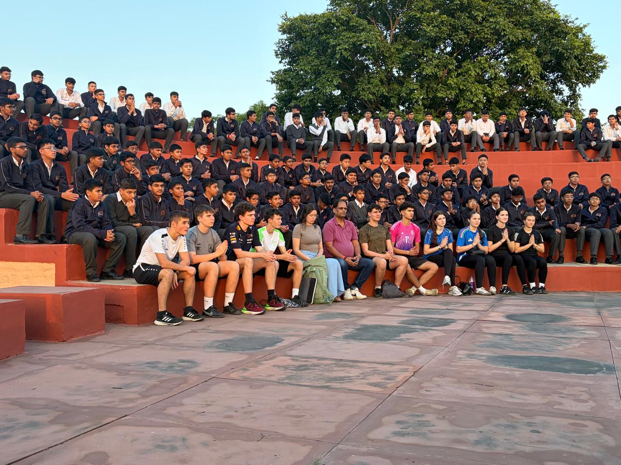 Auf dem Weg nach Gwalior besichtigte die Gruppe in Agra das historische Red Fort und wurde im Anschluss von einem ehemaligen Schüler der Scindia School gastfreundlich empfangen. In Gwalior selbst stand der Austausch mit der Partnerschule im Mittelpunkt: Die Schülerinnen und Schüler nahmen an der Morning Assembly teil, erhielten Einblicke in Unterricht und Fachbereiche wie Musik, Holz- und Werkstätten und führten ein gemeinsames Research Project zu heimischen Pflanzen durch. Sportliche Aktivitäten wie Cricket, Fußball und Tennis sowie gemeinsame Teerunden ermöglichten ein lebendiges Miteinander.