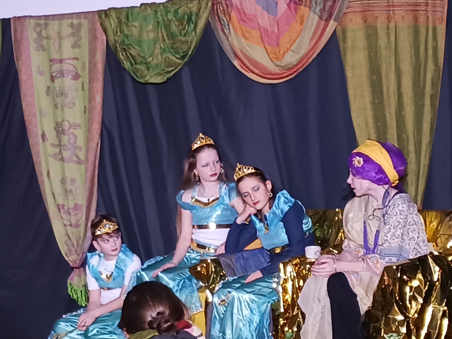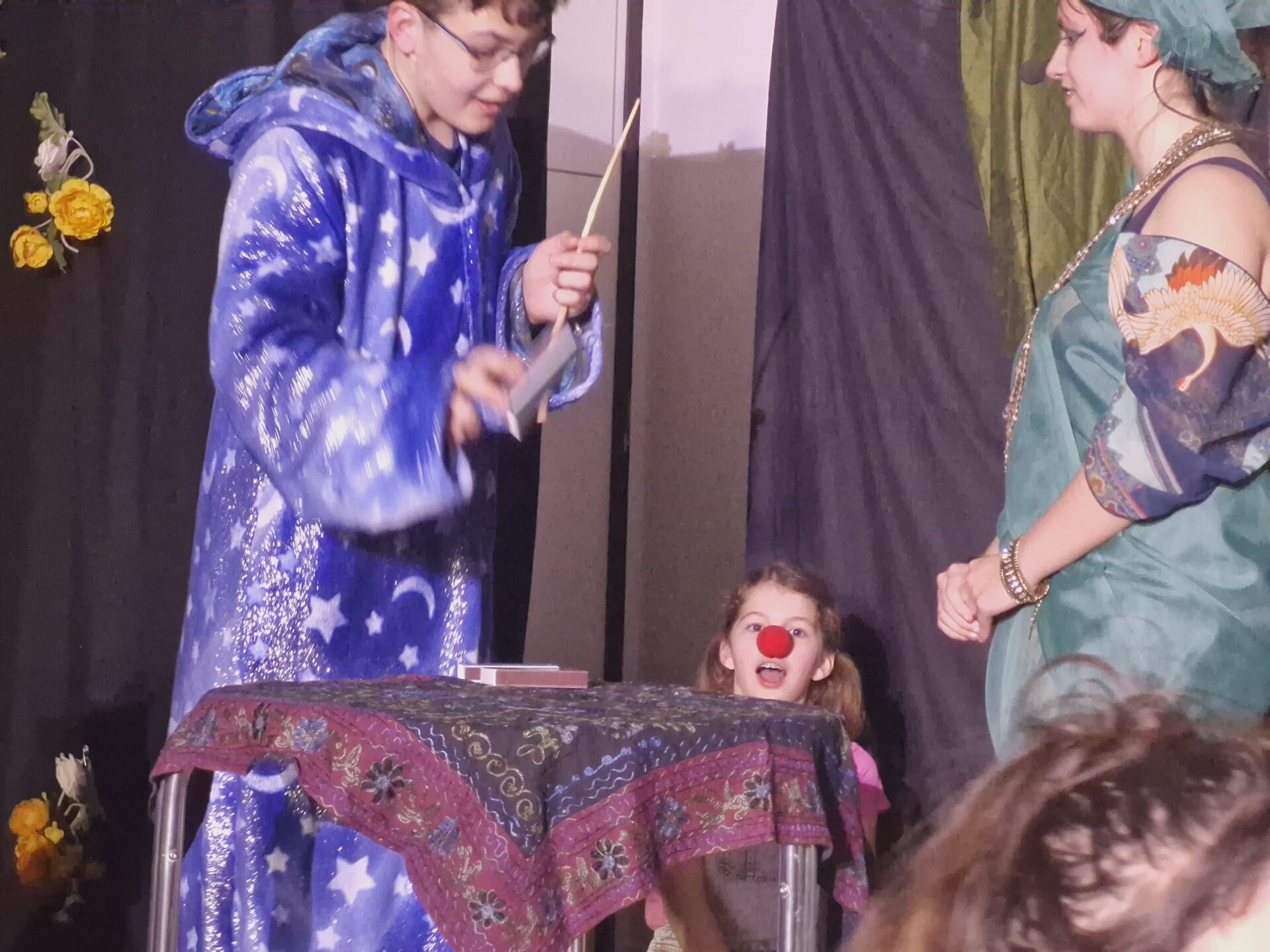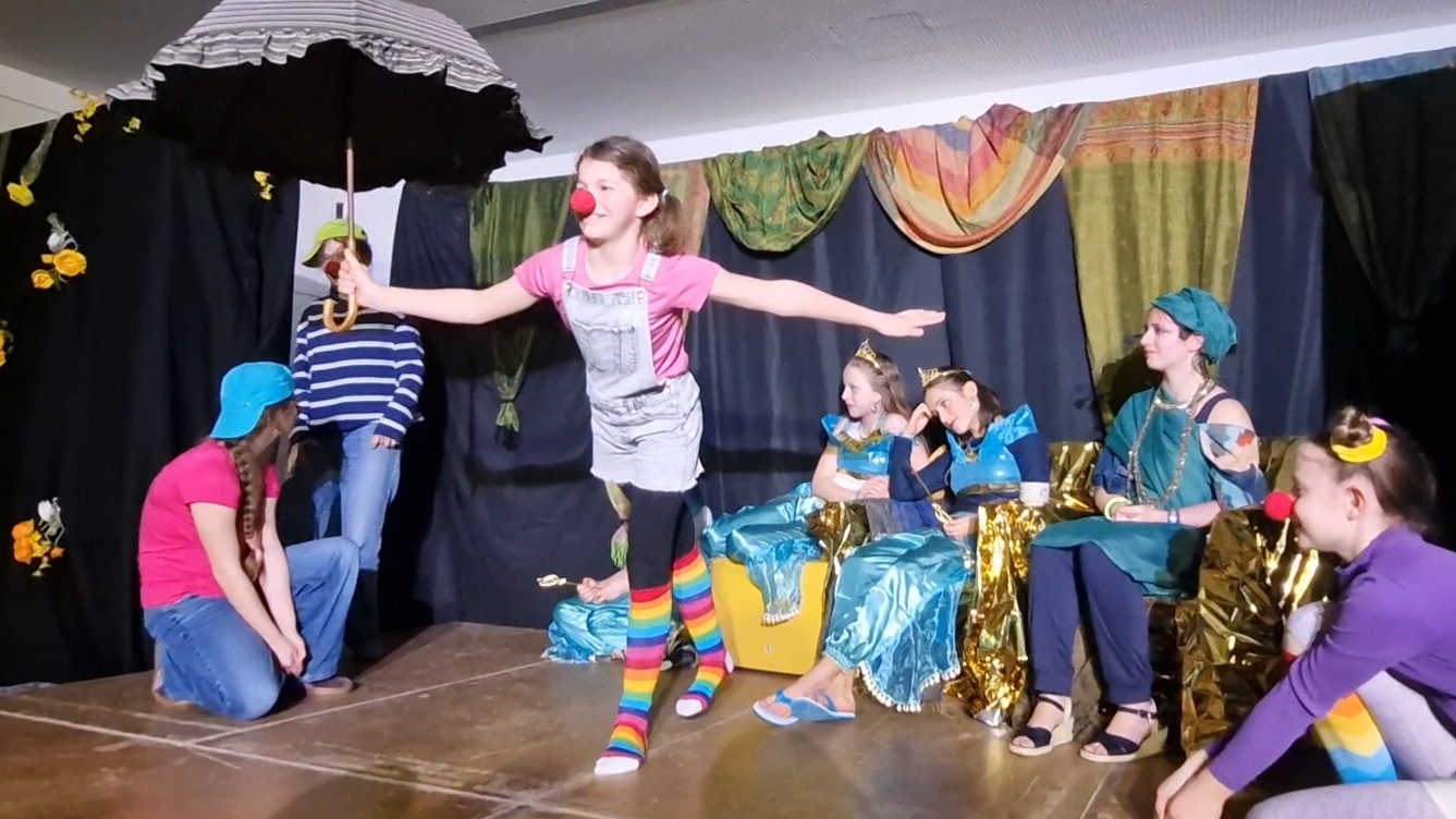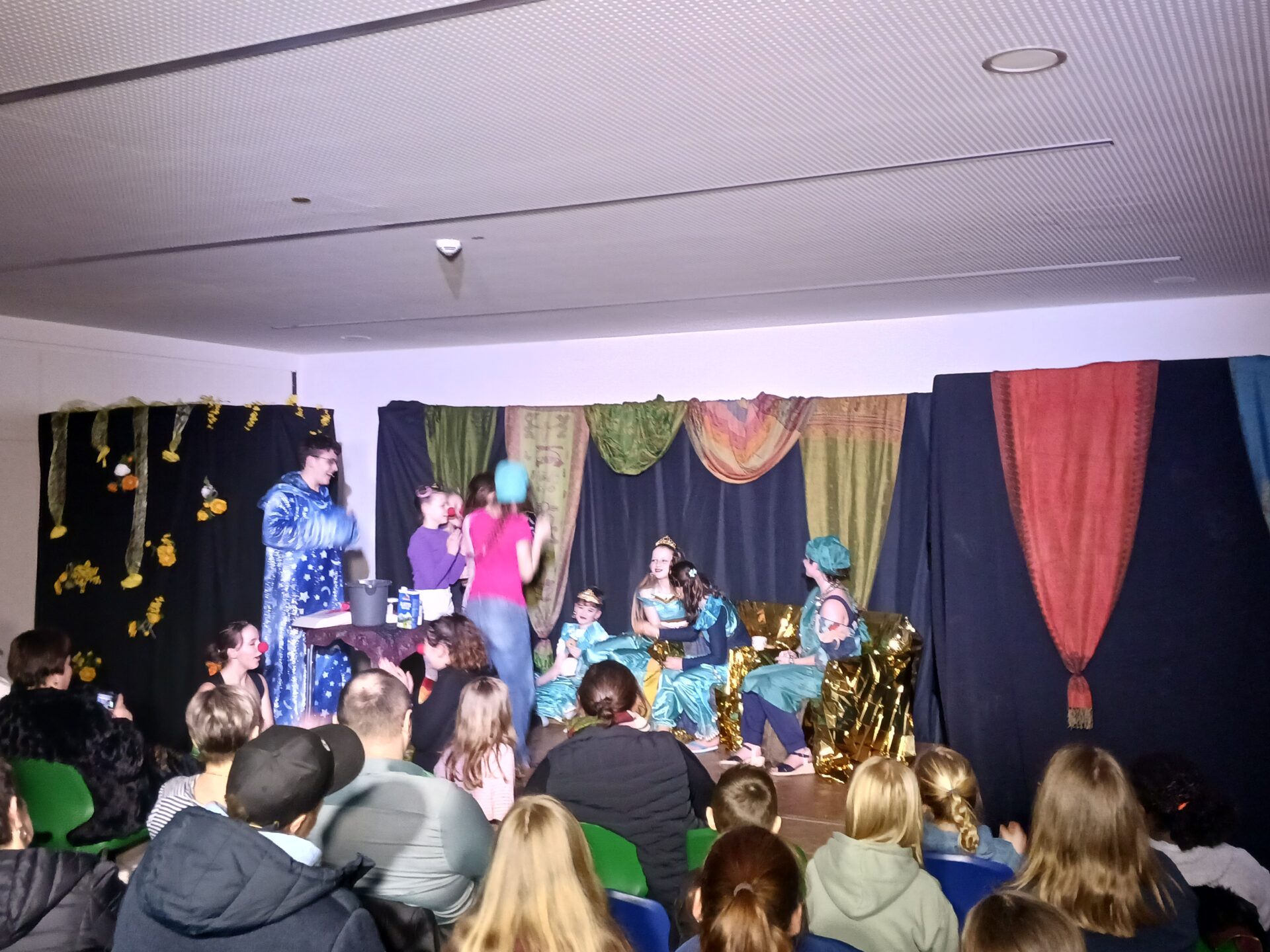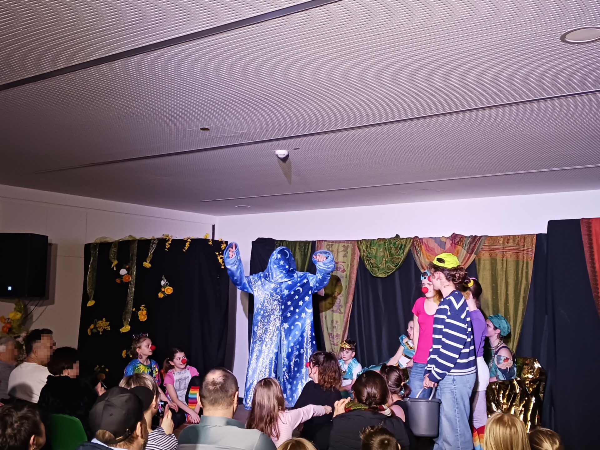 Im Georaum verwandelte sich die Bühne in eine bunte Zirkuswelt: Mit liebevoll gestalteten Szenen erzählten die Schülerinnen und Schüler die Geschichte von drei Prinzessinnen am Hof eines Sultans, die ihr Lachen verloren haben. Mit artistischen Einlagen, humorvollen Momenten und viel Fantasie gelang es den Darstellerinnen und Darstellern, das Publikum mitzunehmen – und am Ende auch den Figuren auf der Bühne das Lachen zurückzugeben. Eine ganz besondere Rolle spielten dabei die legendären „Lachkekse“ – im Stück die ebenso einfache wie geniale Lösung für (fast) jedes Problem. Wir versuchen gerade noch, dem Zauberer das Rezept zu entlocken…