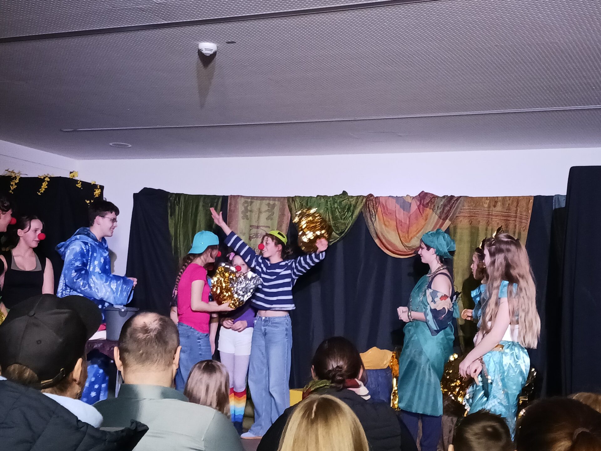 Das Publikum dankte den jungen Schauspielerinnen und Schauspielern mit herzlichem Applaus. Im Hintergrund hatte Murphy als Technikchef die Fäden in der Hand – vielen Dank für die Unterstützung! Der Abend zeigte eindrucksvoll, wie viel Engagement, Teamarbeit und Kreativität in der Theatergruppe steckt – und machte Lust auf kommende Aufführungen.