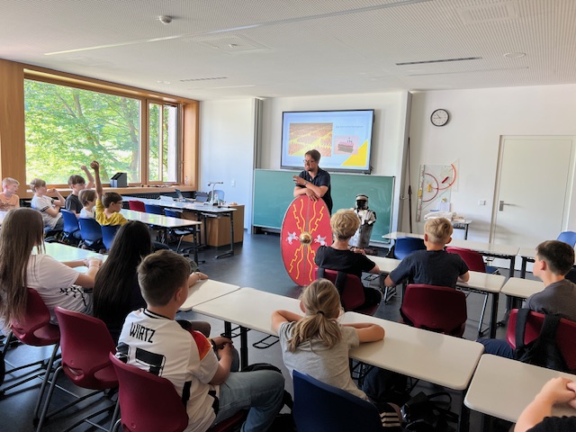 - viele weitere Aktivitäten wie die Mitwirkung am Tag der offenen Tür mit Bastelecken, römischen Spielen oder auch digitalen Rätseln und Spielen, der Bau eines römischen Ofens mit Schülern der Oberstufe, das Kochen römischer Speisen usw.