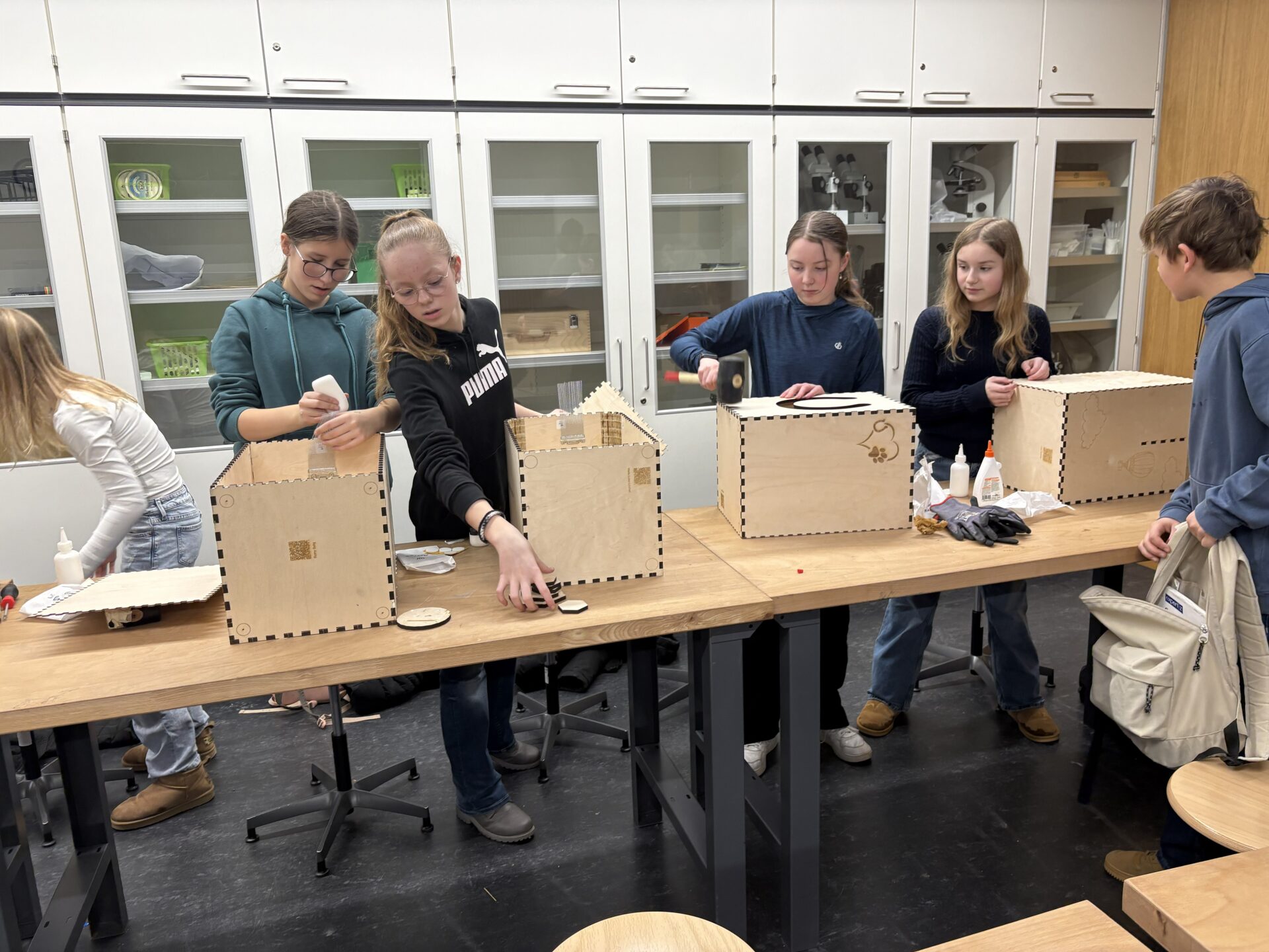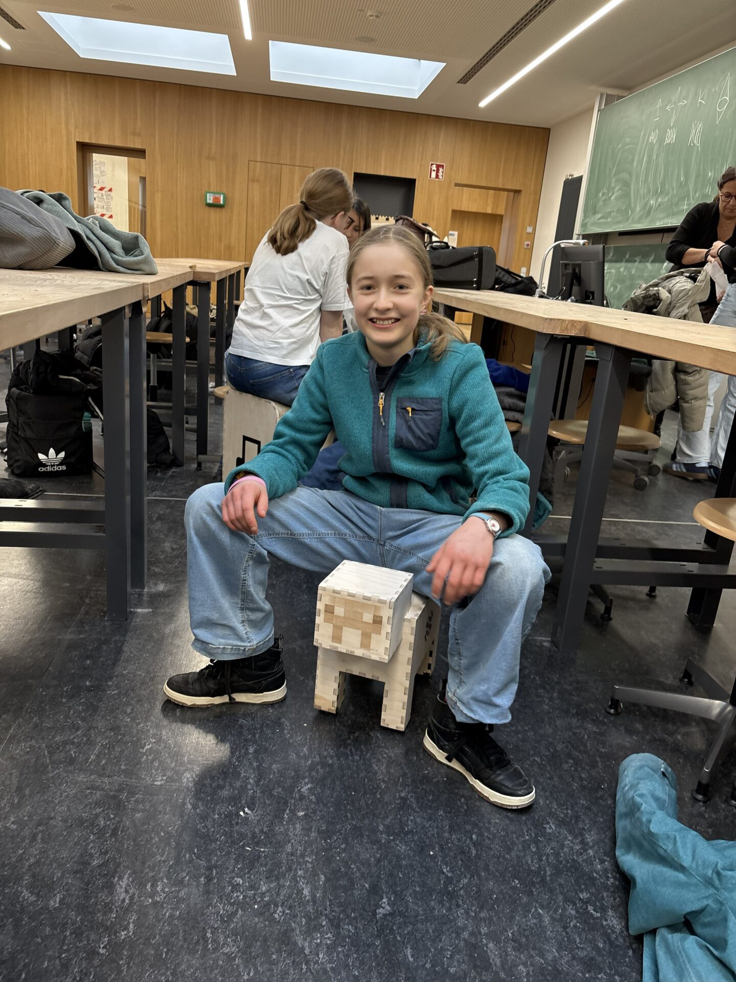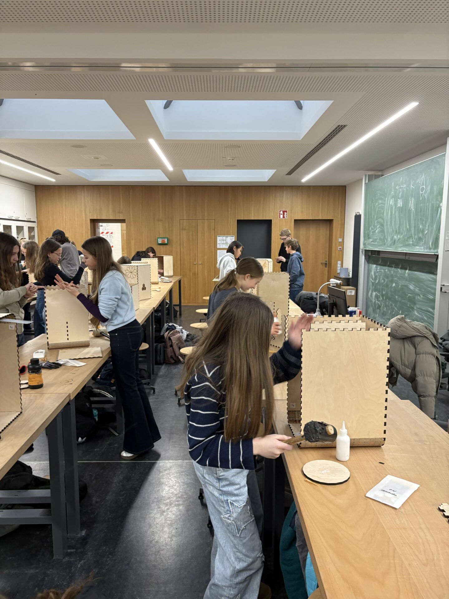 Dass die Symbiose aus Technik und Musik perfekt funktioniert hat, bewiesen die Schüler der 7a sofort: Kaum war der letzte Arbeitsschritt an den Cajons vollbracht, hallten auch schon die ersten Rhythmen durch den Raum.